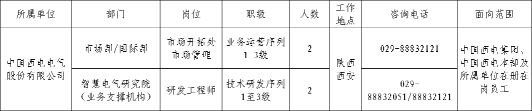 1.应聘人员应为中国西电集团、中国西电本部及所属单位在册在岗员工;